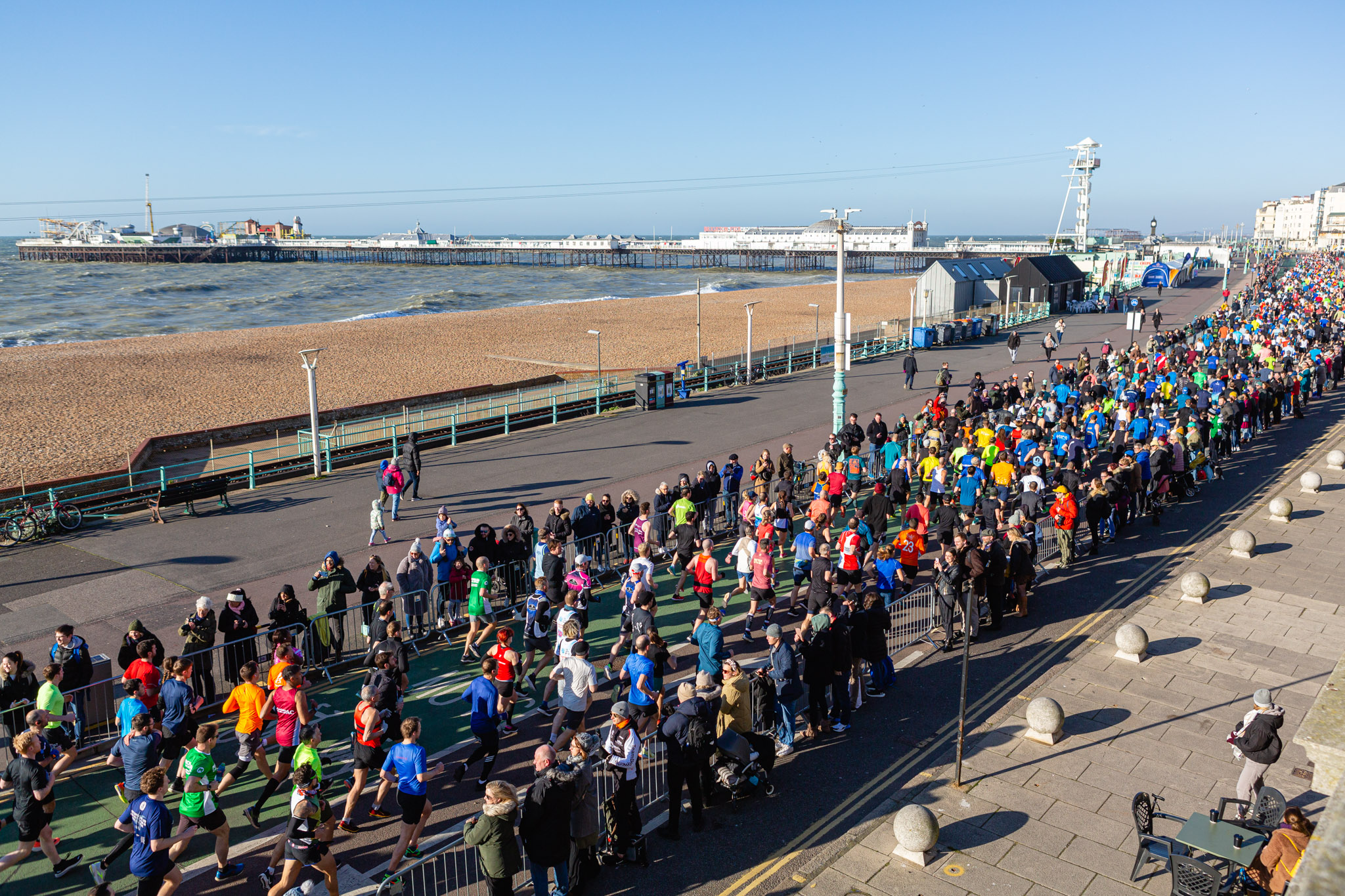The Brighton & Hove 10K begins at Hove Lawns, goes east along the coast, passing by the West Pier, i360, Palace Pier and the Pavilion to Black Rock on Marine Parade and then turns back towards the city and into Hove before the Finish at Hove Lawns.